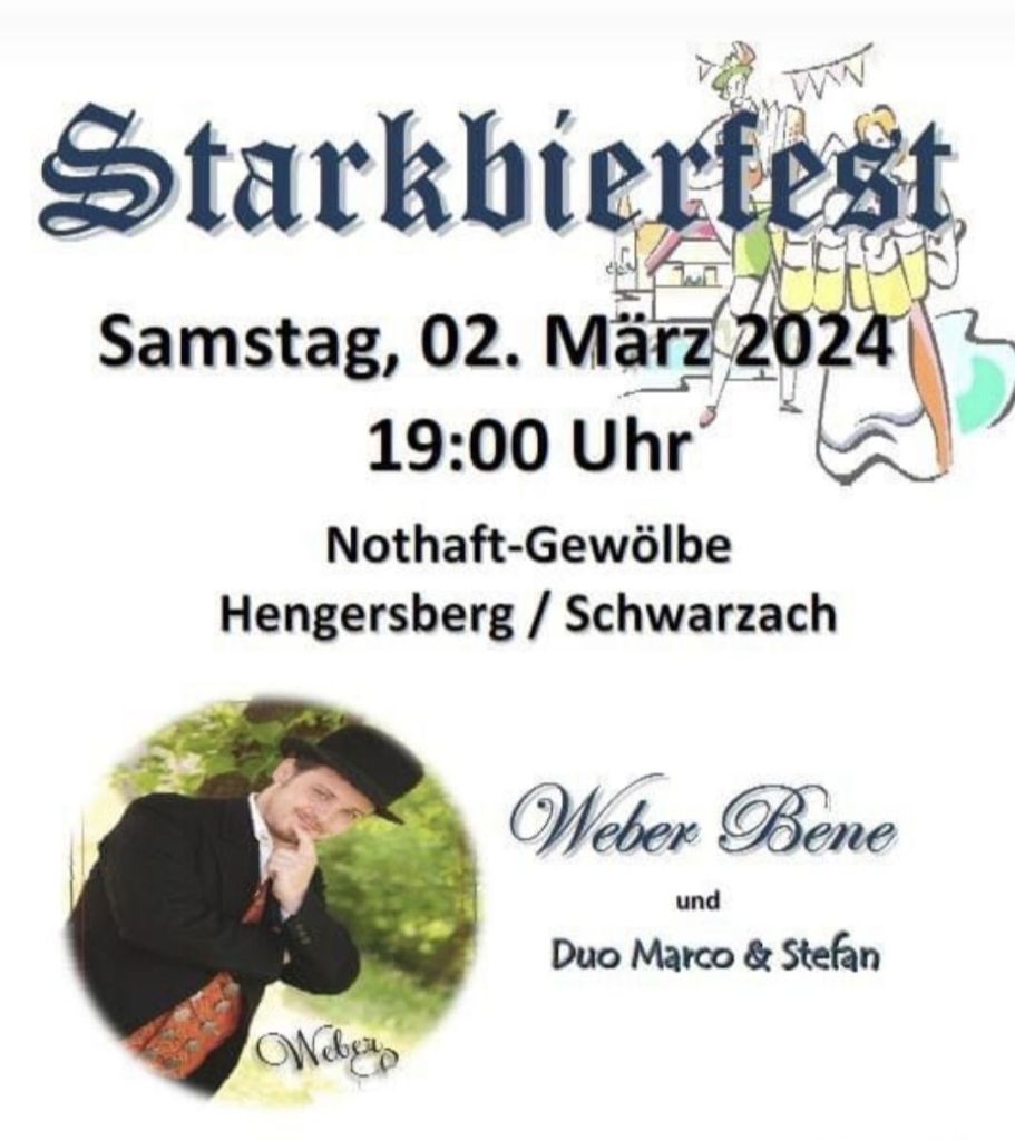 Mit einer stattlichen Abordnung besuchten wir das Starkbierfest im Nothaft-Gewölbe in Hengersberg. Bei guter Musik mit Marco und Stefan, Gstanzel und Witze vom Weber Bene war es ein sehr gelungener und kurzweiliger Abend der mit Starkbier und gutem Essen abgerundet wurde.